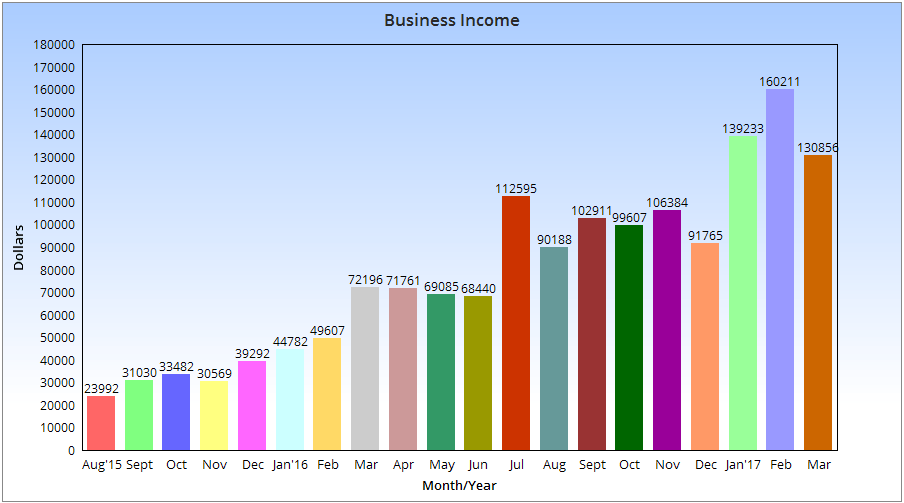 I earned $130,856.35 blogging and online in March of 2017, before expenses.