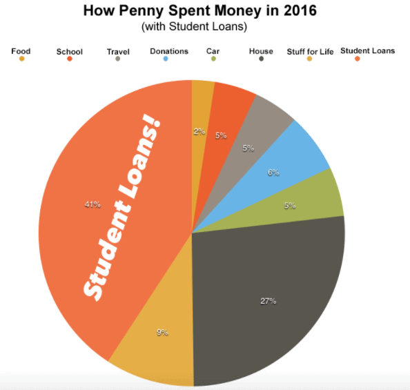 Let’s put together some fun charts on this. Here’s a look at what we spent our money on in 2016:
