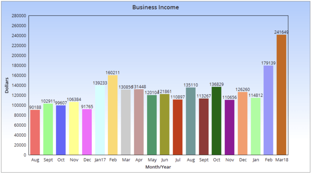 - Total income in March of 2018: $241,649