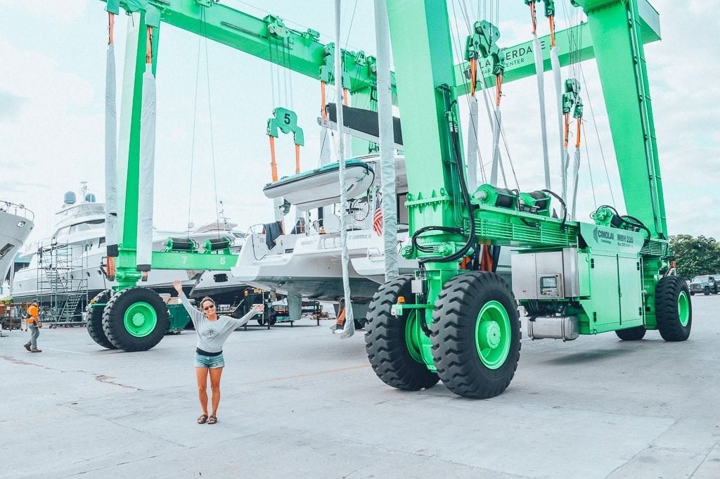 April wasn’t a bad month, but most of the month was spent working on the boat, getting warranty items addressed, modifying things, and so on. As you can see from the picture above, we hauled our boat out of the water, and that is me standing in front of it.