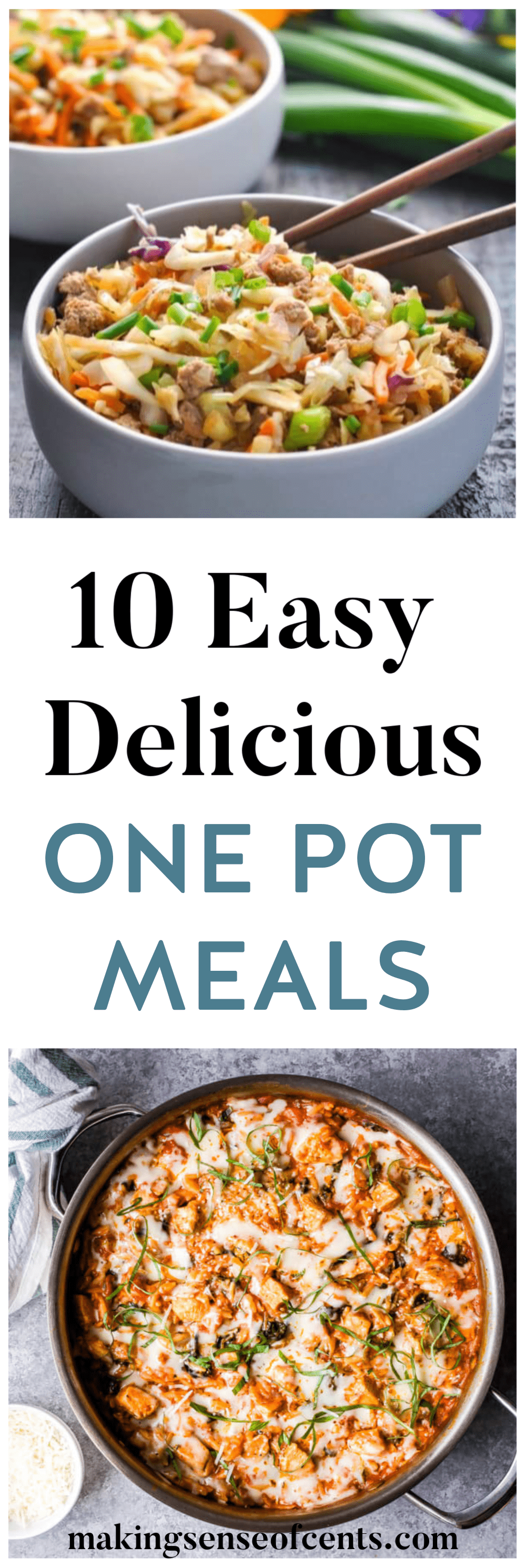 So today, I have a great list of one pot meals for you to try. There are several vegetarian and vegan options, there are some delicious looking comfort food recipes, and a fun take on egg rolls. And more!