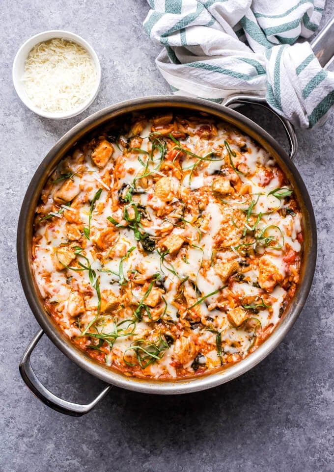 3. One Pot Parmesan Chicken, Spinach and Orzo
