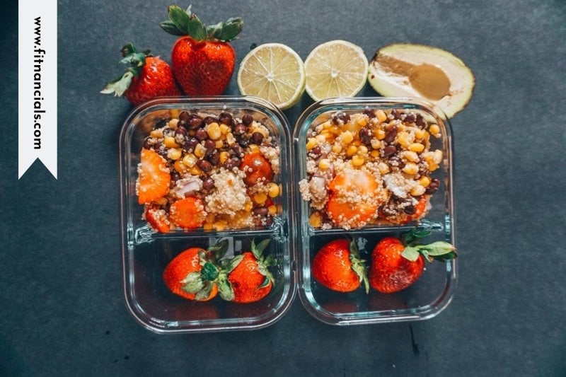 If you’re looking for cheap vegetarian meal prep ideas, the Quinoa Bowl with Black Beans is delicious. It has strawberries, avocado, and lime, but you can use whatever fresh fruits and vegetables are on sale.