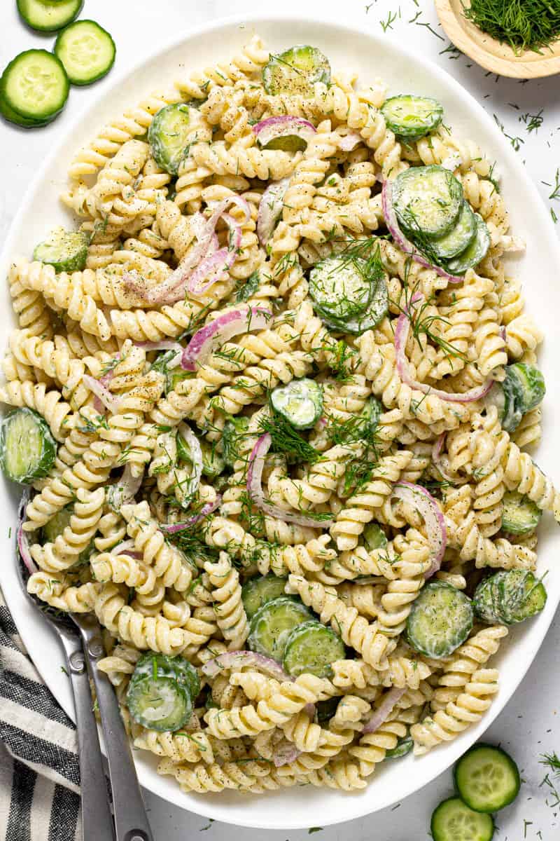 • Cucumber Pasta Salad – This healthy pasta salad recipe is a good summer meal idea because it is fresh and light. This recipe is vegan, but I think adding feta cheese to it would be really good.