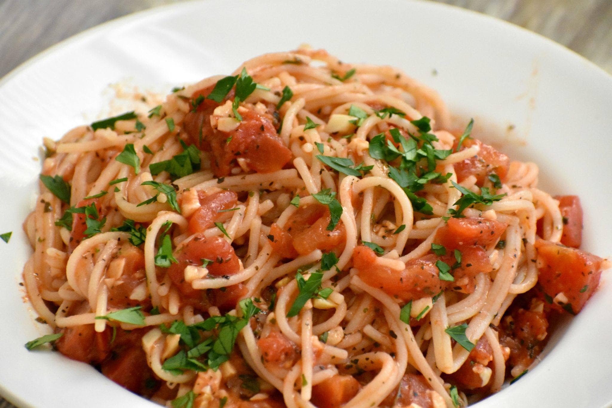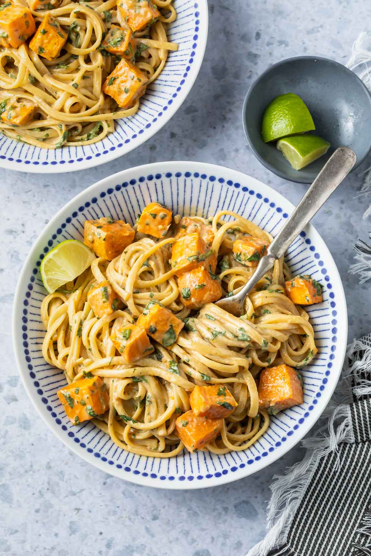3. Sweet Potato Pasta With Cilantro Tahini Sauce