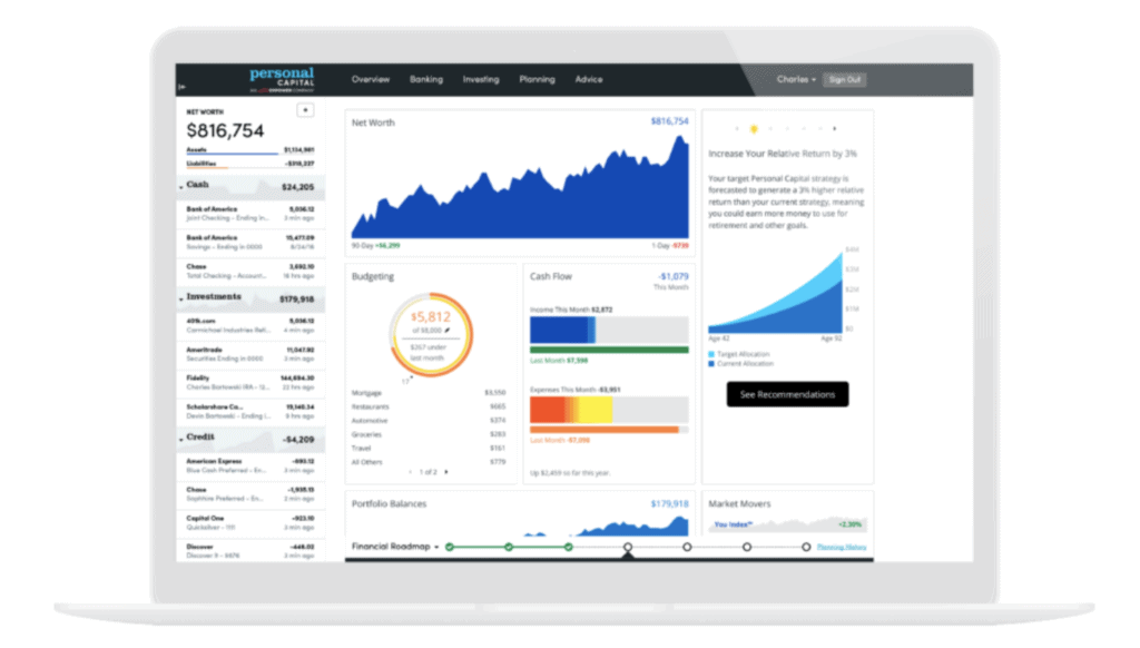 You can see your investment portfolio all in one place so that you can easily track your performance, see your investment allocations, and easily analyze everything related to your personal finance situation.