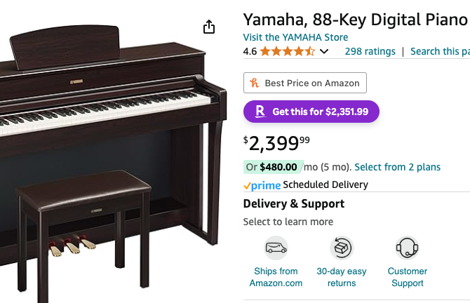 One of the first programs worth considering is Amazon Monthly Payments — that is, if it’s available for the particular product you are purchasing. The Amazon Monthly Payments program allows you to pay over the course of four months (five total payments). You can typically determine if the item you want is eligible for a payment plan by checking the options offered under the price on the product page.