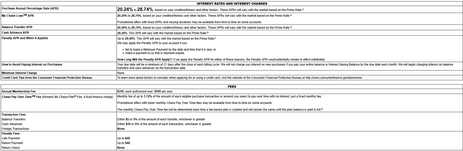 | My Chase Loan | Borrow against credit limit with fixed monthly payments at rate lower than your card’s standard APR, with funds deposited to your bank account in 1 to 2 days | Minimum $500, with maximum depending on your monthly spending, creditworthiness and other factors |