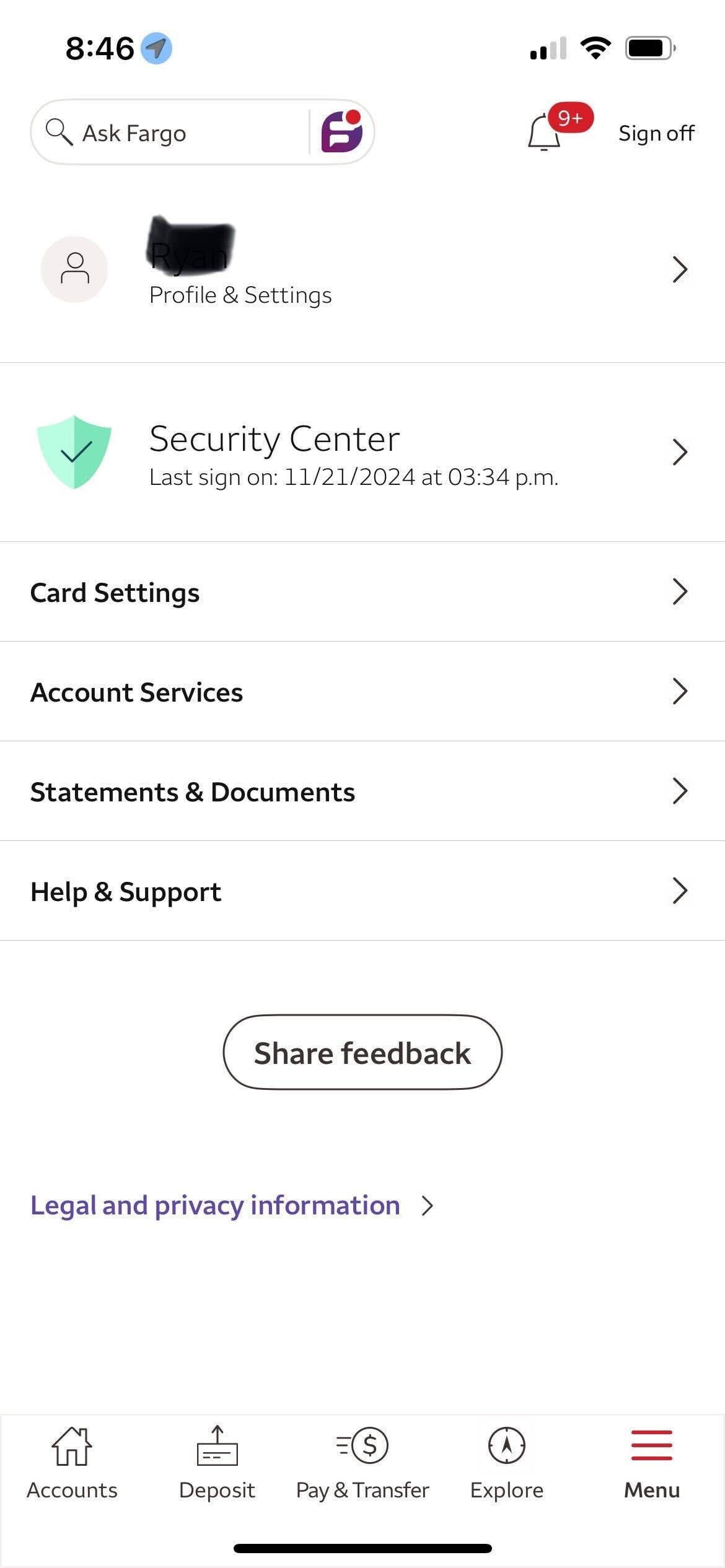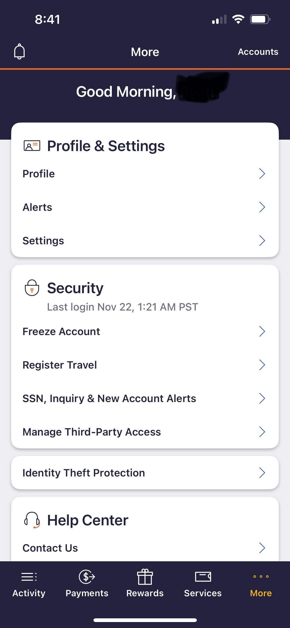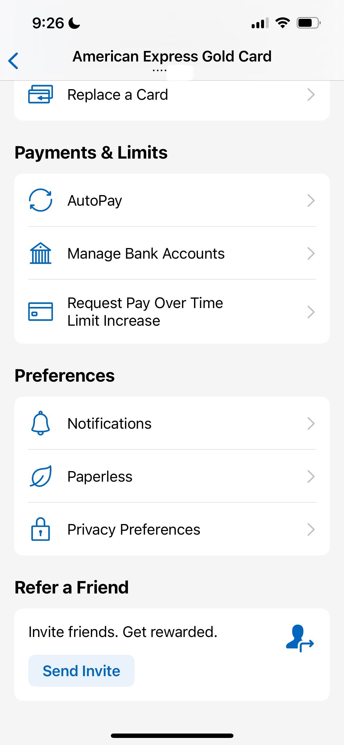 - Tap “Account” in the bottom right corner, then select the card you would like notifications for