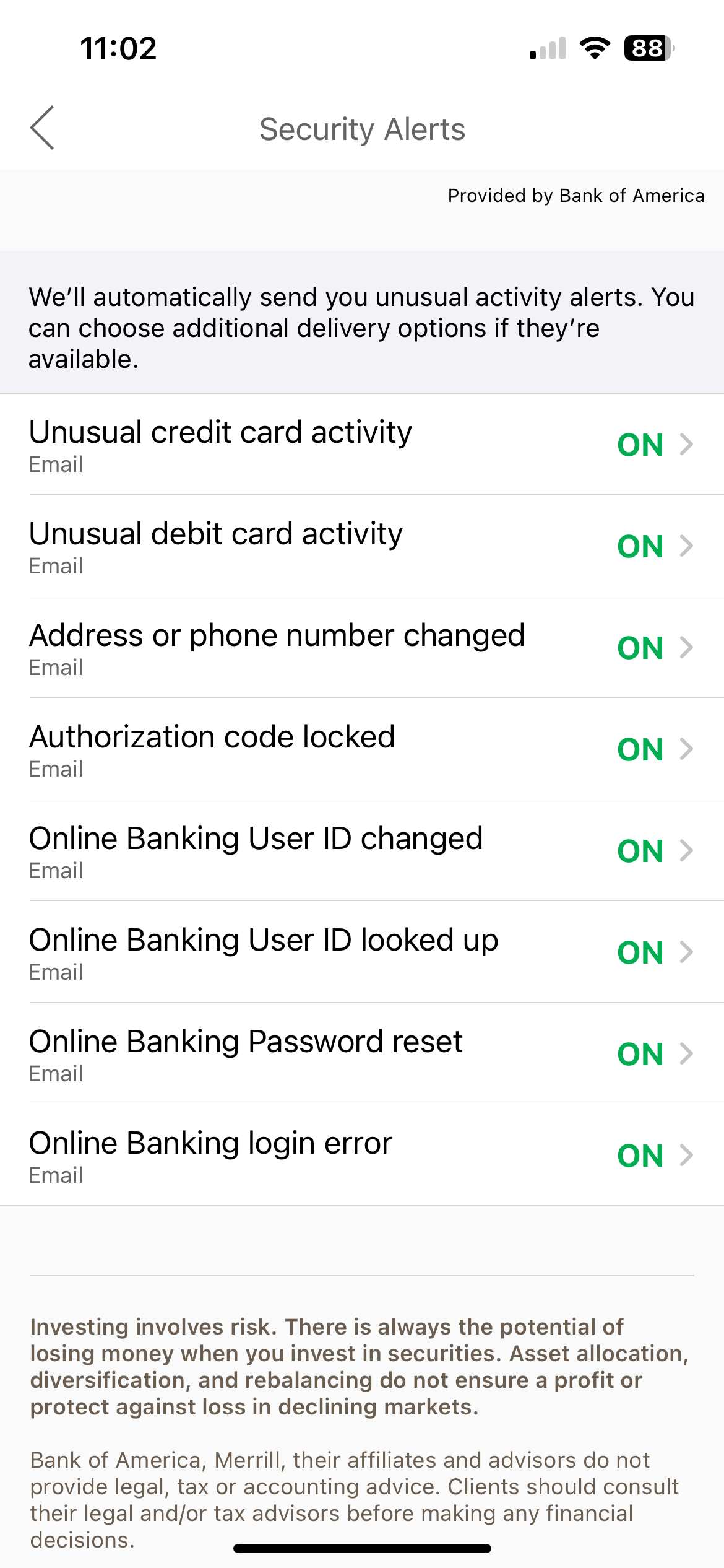 - Toggle through alert options, enable the alerts you’d like to receive and choose your delivery options