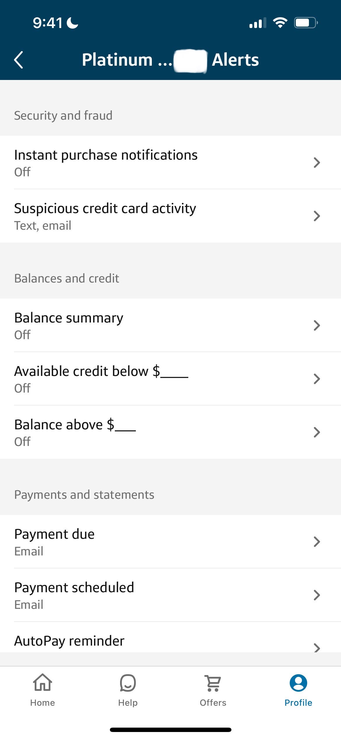 Here’s how to set up mobile alerts with some of the most common credit card issuers within your mobile app: