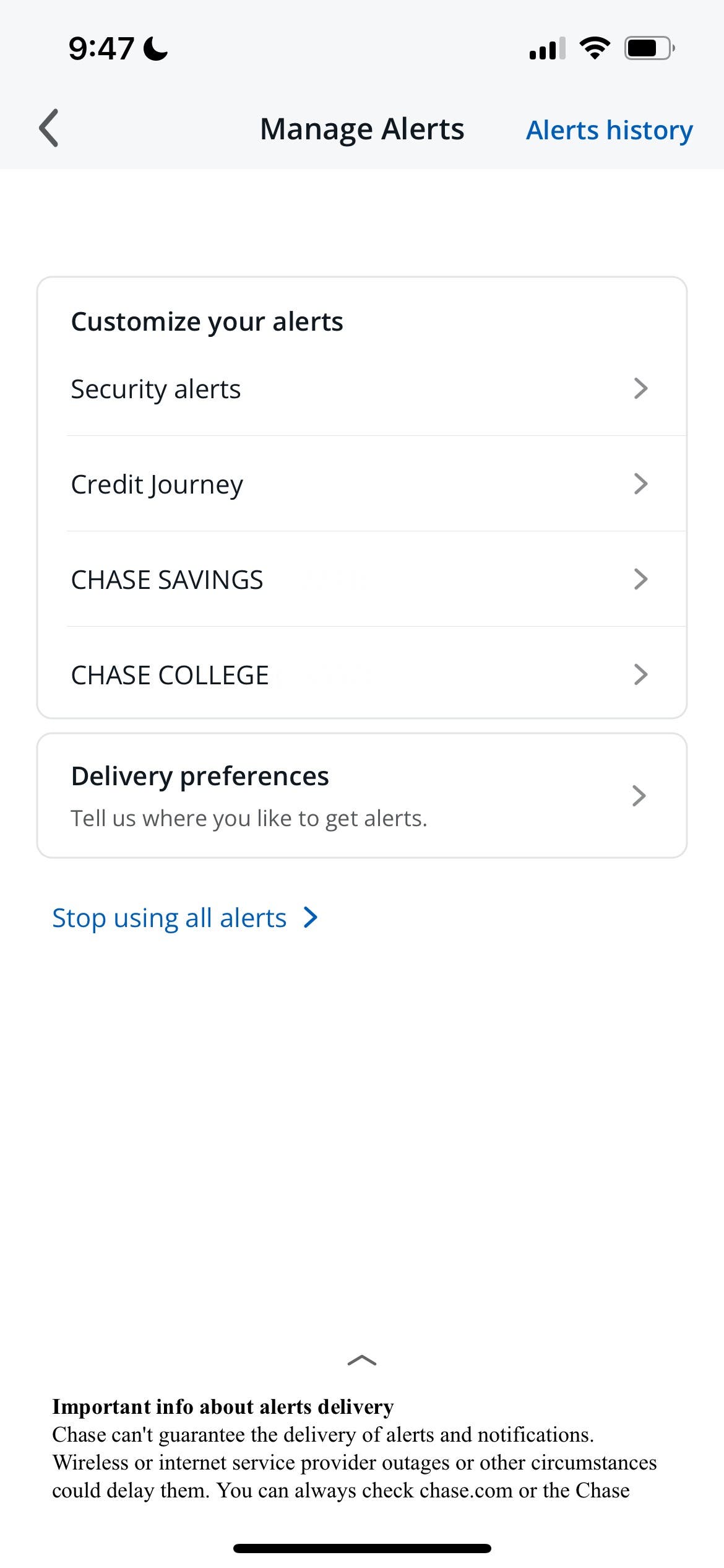 - Use the top two menu options to decide which alerts you’d like to receive, then tap “Delivery Preferences” to customize how you’d like to receive them