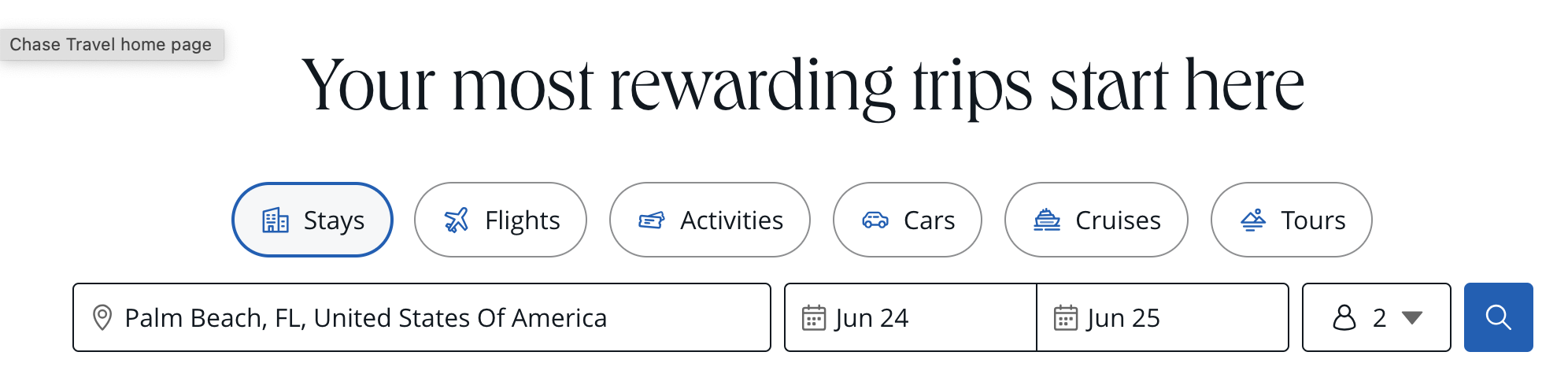 Once you select “Travel”, you’ll go to the Chase Travel landing page to begin your search.