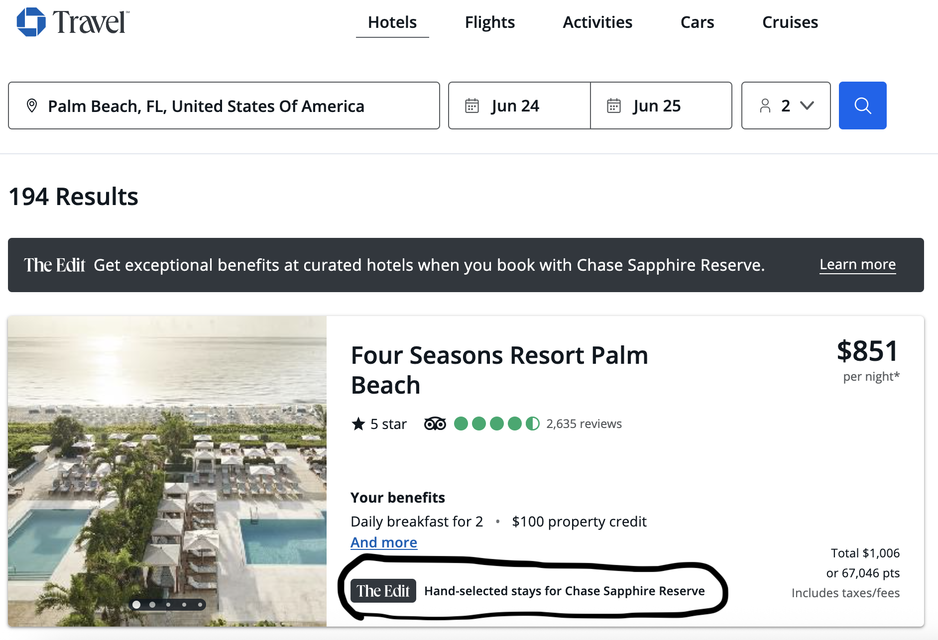 Head to the Chase Travel portal and begin searching for properties in your destination over your preferred dates.
