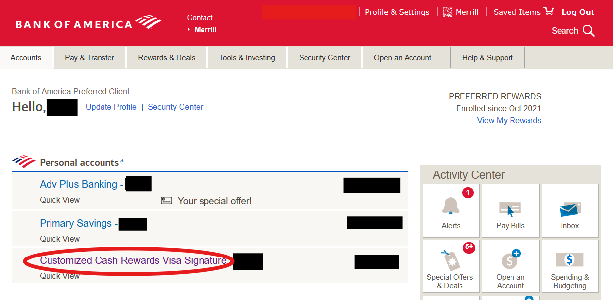 - Log into your account. From there, click on the name of the credit card you want to update.