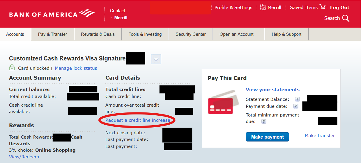 Here are the steps to take before making your credit limit increase request with Bank of America, what to do if your credit limit increase request is denied and how to increase the odds of getting a credit line increase from Bank of America.