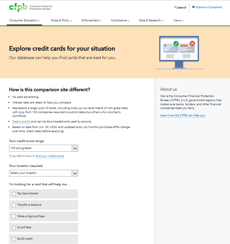 The Consumer Financial Protection Bureau (CFPB) released its new Explore Credit Cards tool this week, intended to allow consumers to compare more than 500 credit cards based on “unbiased, comprehensive data.”