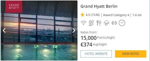 Maybe you’re hoping for a luxury hotel stay somewhere fancy and worthy of an Instagram photo shoot. In that case, you could consider booking several nights at the five-star Grand Hyatt Berlin in Berlin, Germany. A one-night stay here with World of Hyatt points would only set you back as little as 15,000 points for a standard room, so 100,000 points are enough for six nights.
