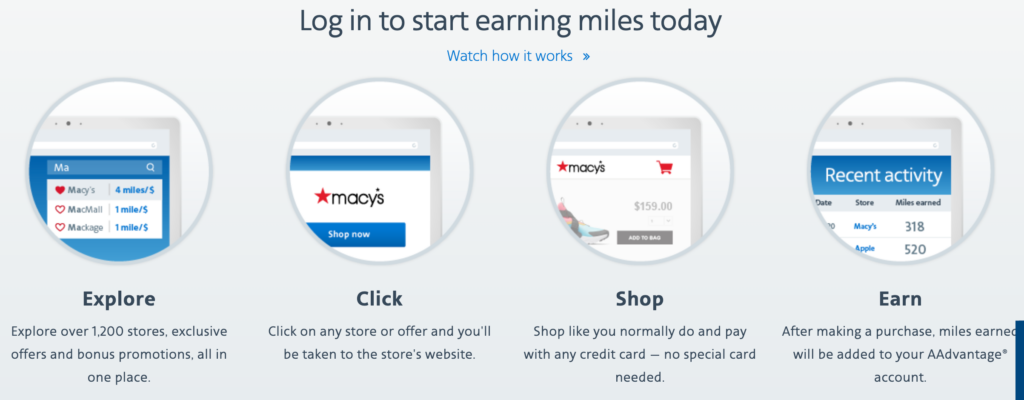 All you have to do is make sure you’re logged in to your AAdvantage account, head to AAdvantage eShopping and “click through” the portal to a participating store before you make a purchase.
