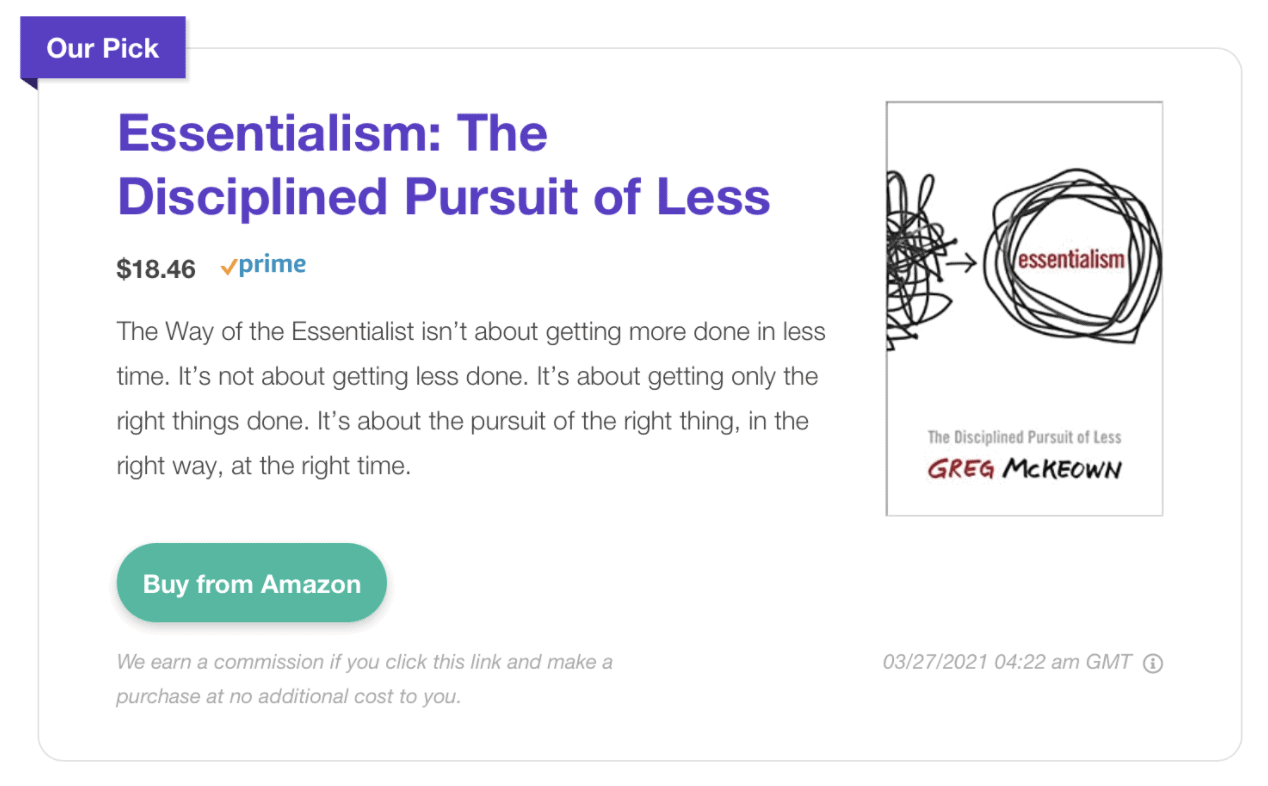Lasso is an all-in-one WordPress affiliate marketing plugin that helps you create custom displays for your affiliate products, such as the one below.