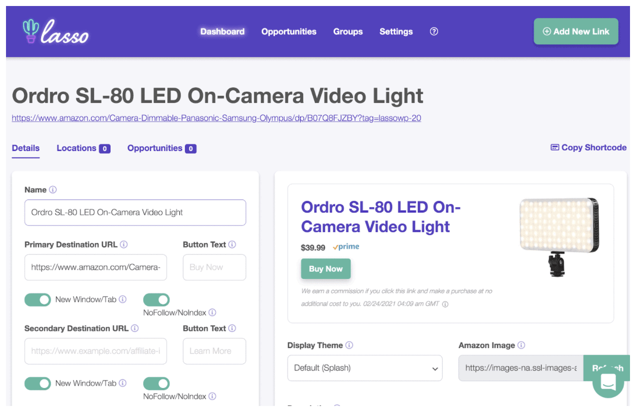 Then, head to Lasso and click “Add New Link” and paste the URL into the dashboard: