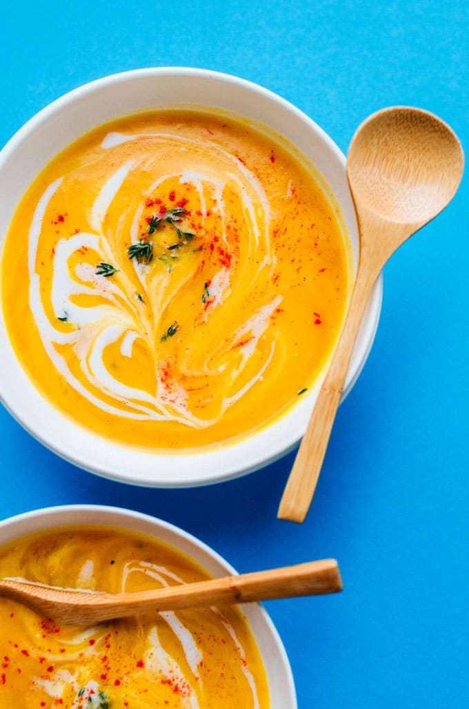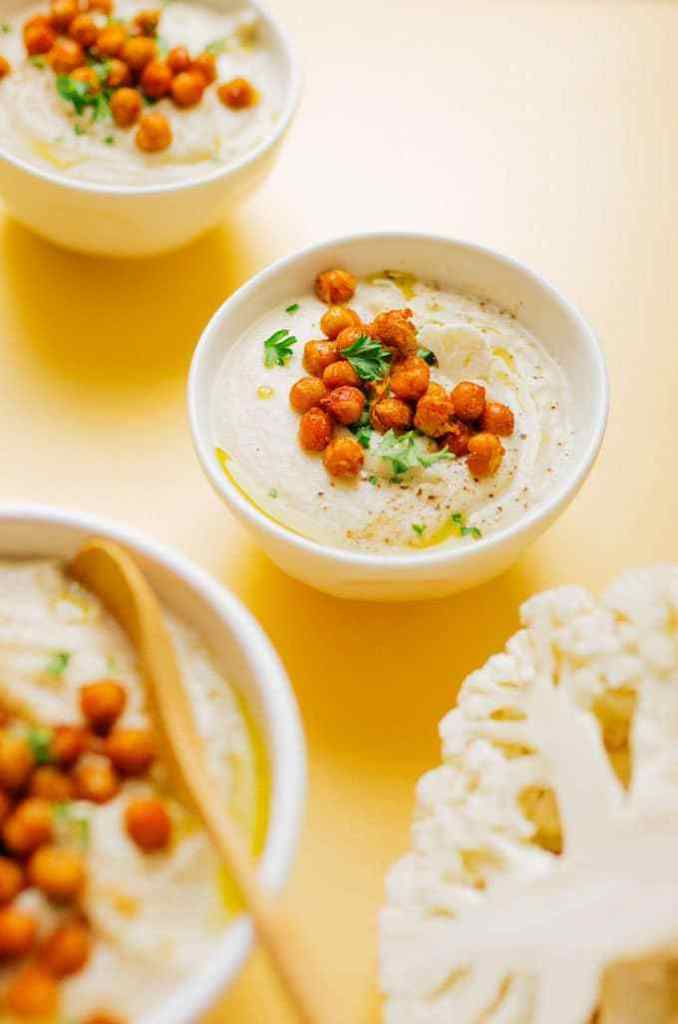 - Easy Slow Cooker Cauliflower Soup – Cauliflower, cashews, and a smoky chickpea topping. This soup is packed full of protein, and it’s vegan. This soup is creamy, rich, and the chickpea topping is roasted, which gives it a nice crunch.